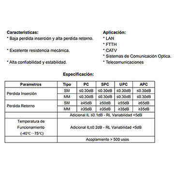 Conectores SM SC-PC SC-APC y MM SC-PC