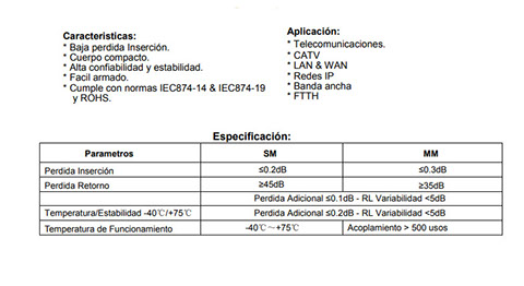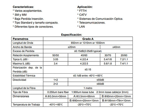 Divisor Optico SM 1 x 2 LC-PC 900µ.